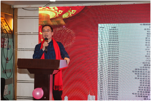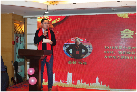 活动伊始,会长韦祎发表致辞,他讲到:2018年是中南⼤天津校友会启航的⼀年,回顾2018,我们收获满满;展望2019,我们期待校友会在⼤家的⽀持下更加精彩。充满激情的讲话让在座每一位来津发展的校友心潮澎湃。