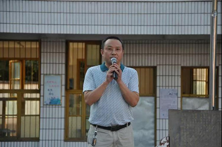 芙蓉桥小学罗明波校长首先代表学校师生致辞,他代表全校师生感谢我校友会的爱心之举,希望学生学会感恩,学会奉献,把所有的关爱化为奋进的动力,用优异的成绩回报国家,回报社会。