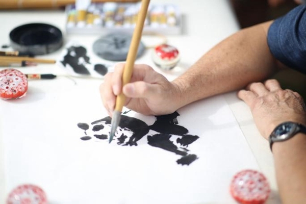 文化展示区,石溪大学孔子学院邀请了长岛知名华人书画家赵天宙老师现场作画,免费赠送给前来观摩求画的参观者。无论是“花开富贵”、“虎虎生威”、“鹰击长空”,还是栩栩如生的动物、苍劲有力的题字,都信手拈来,求字画者趋之若鹜。