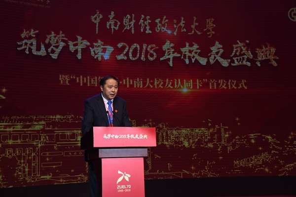 10月28日下午,为庆祝中南财经政法大学成立七十周年,“筑梦中南”2018年校友盛典在南湖校区艺体中心音乐厅举行。